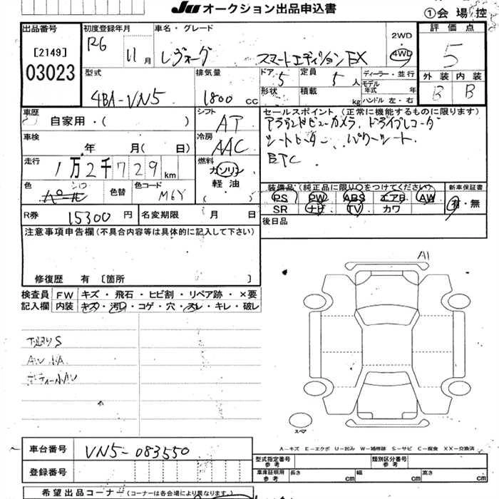 Статус выставлен на аукцион Лот 3023 Аукцион JU Aichi Дата аукциона 12.03.2026