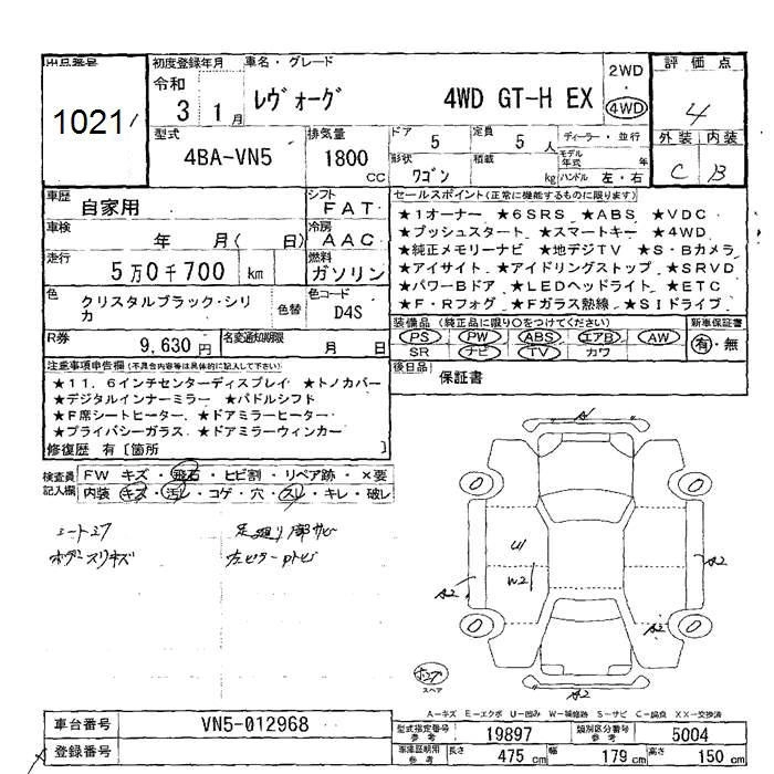 SUBARU LEVORG 2021 г., лот № 1021