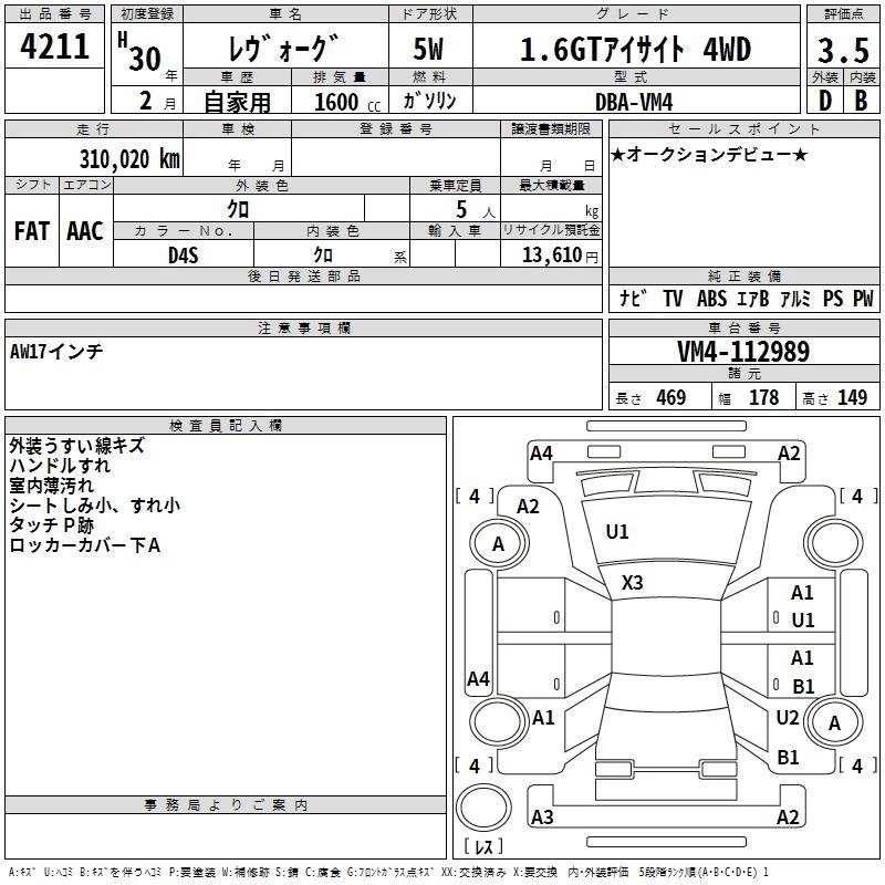 SUBARU LEVORG 2018 г., лот № 4211