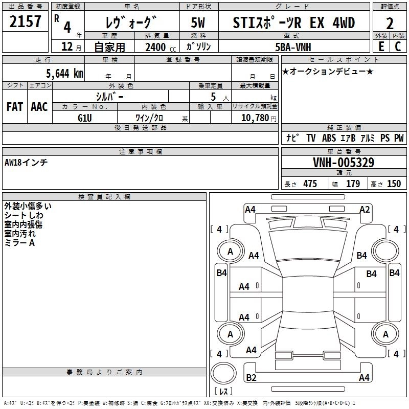 Статус выставлен на аукцион Лот 2157 Аукцион TAA Hiroshima Дата аукциона 17.03.2026