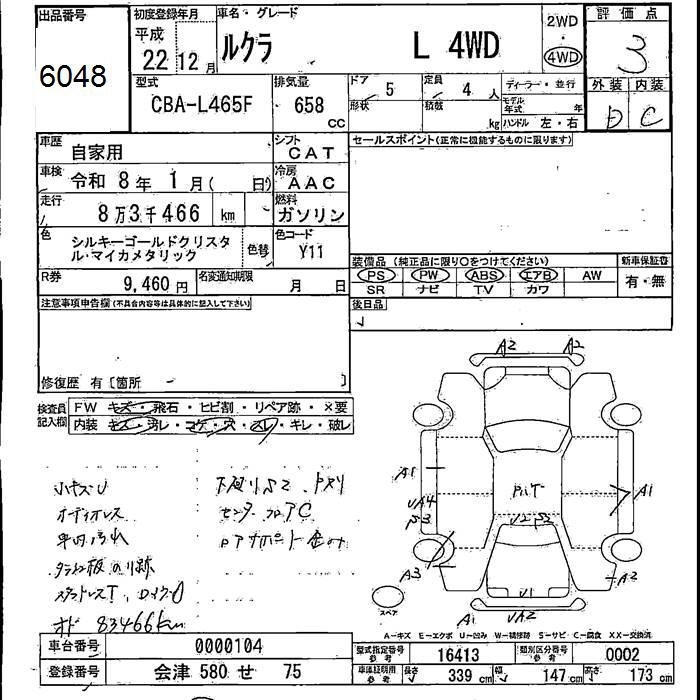 SUBARU LUCRA 2010 г., лот № 6048