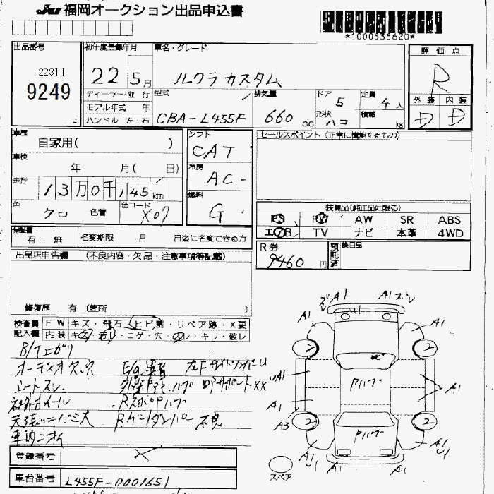 Статус не продан Лот 9249 Аукцион JU Fukuoka Дата аукциона 23.01.2026