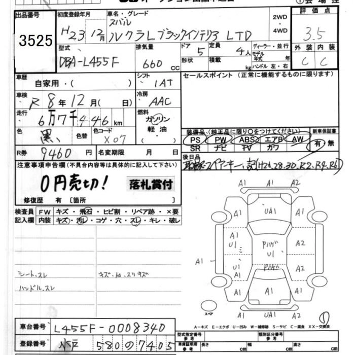 SUBARU LUCRA 2011 г., лот № 3525