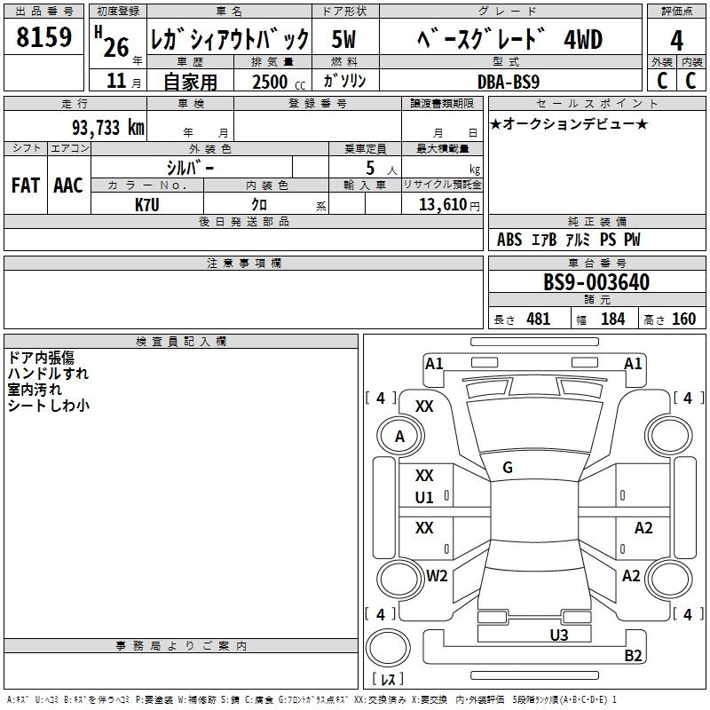 SUBARU OUTBACK 2014 г., лот № 8159