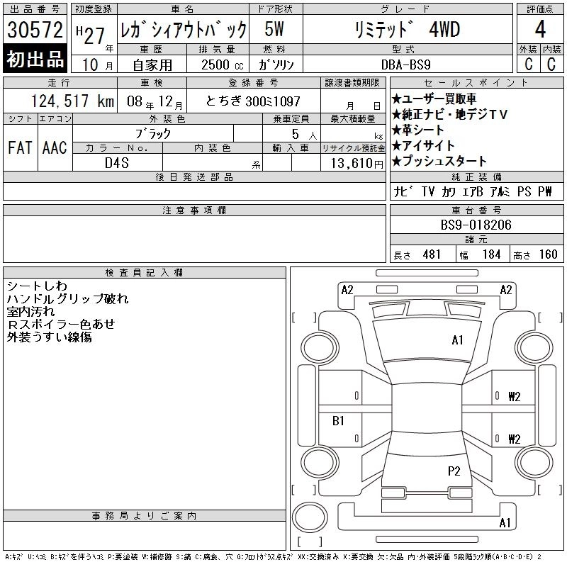 SUBARU OUTBACK 2015 г., лот № 30572