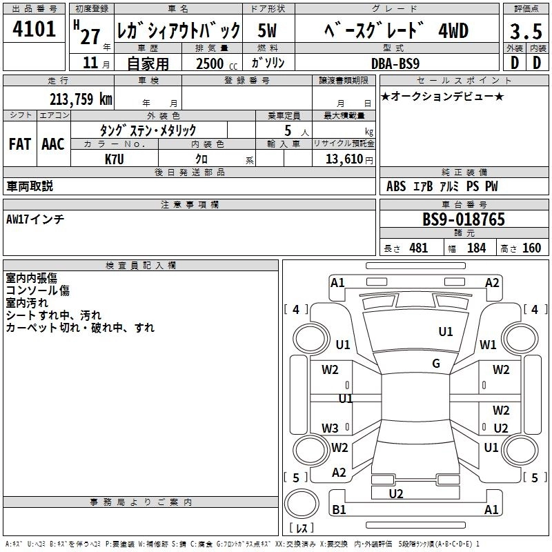 SUBARU OUTBACK 2015 г., лот № 4101