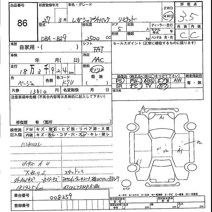 SUBARU OUTBACK 2015 г., лот № 86
