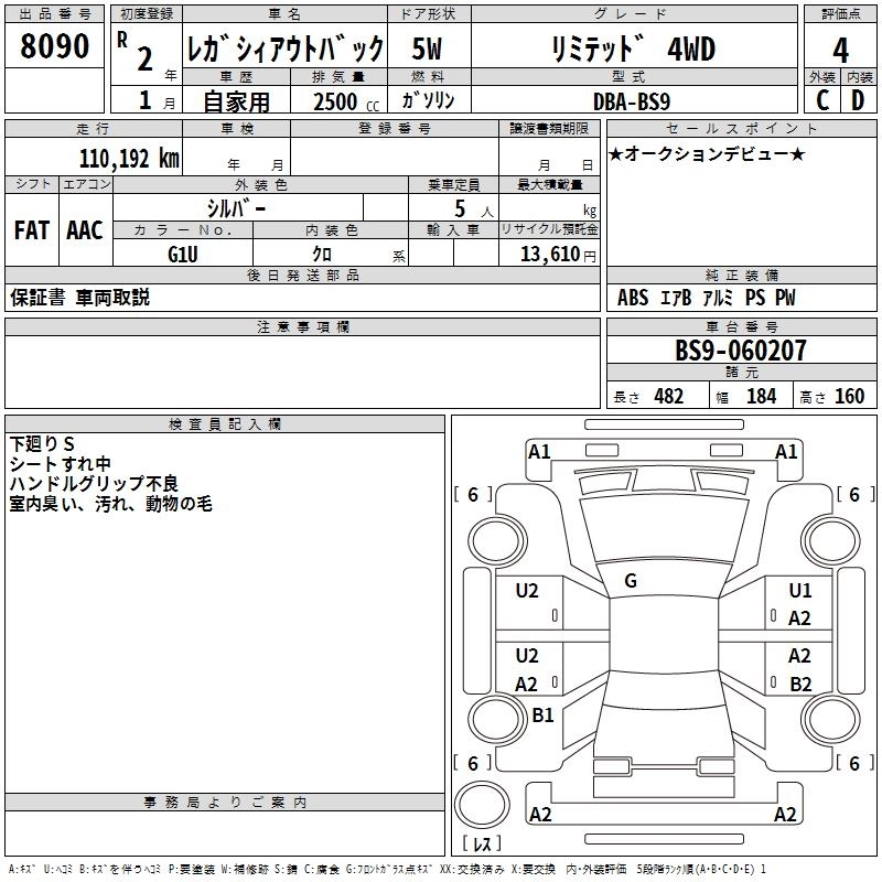 SUBARU OUTBACK 2020 г., лот № 8090