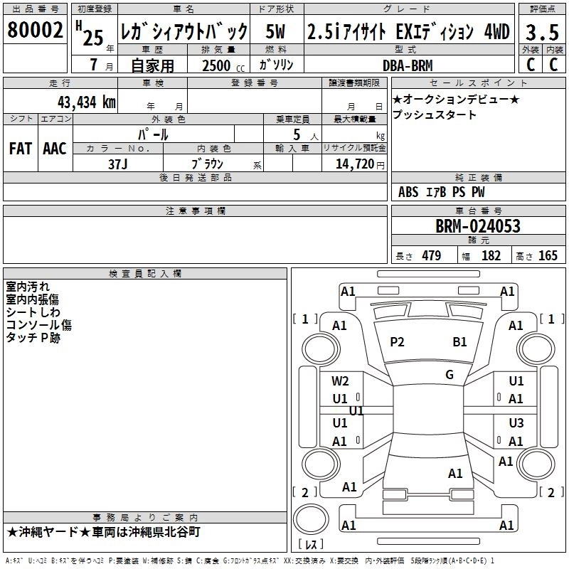 Год выпуска2013 Пробег 43 000 км КузовBRM Комплектация2.5I EYESIGHT EX EDI 4WD