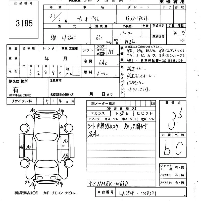 SUBARU PLEO PLUS 2019 г., лот № 3185