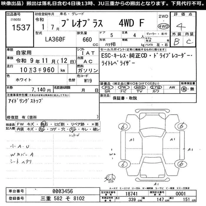 SUBARU PLEO PLUS 2019 г., лот № 1537