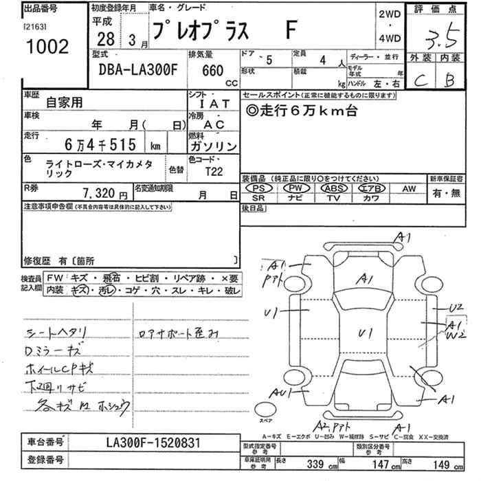 SUBARU PLEO PLUS 2016 г., лот № 1002