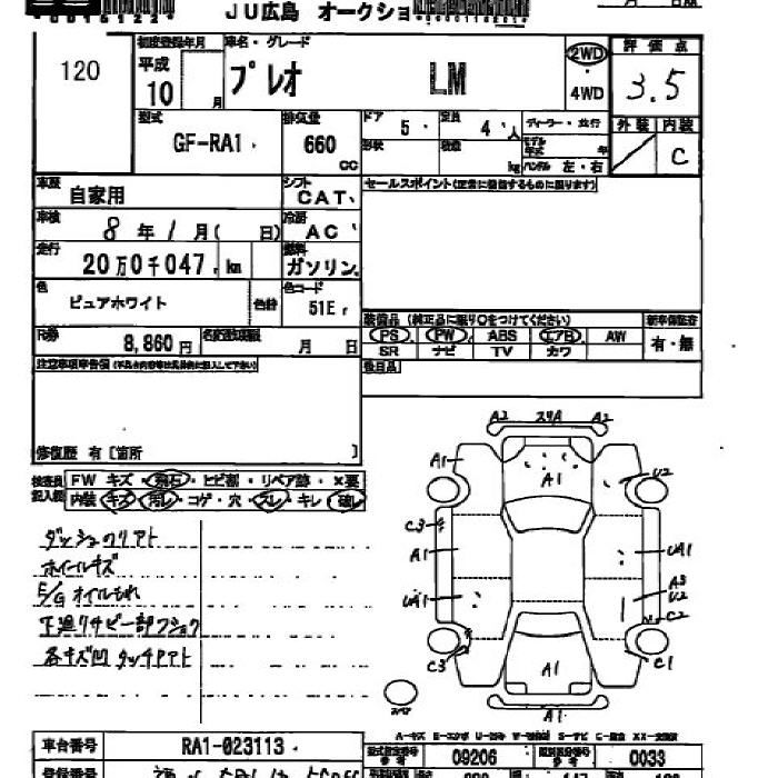 SUBARU PLEO 1998 г., лот № 120