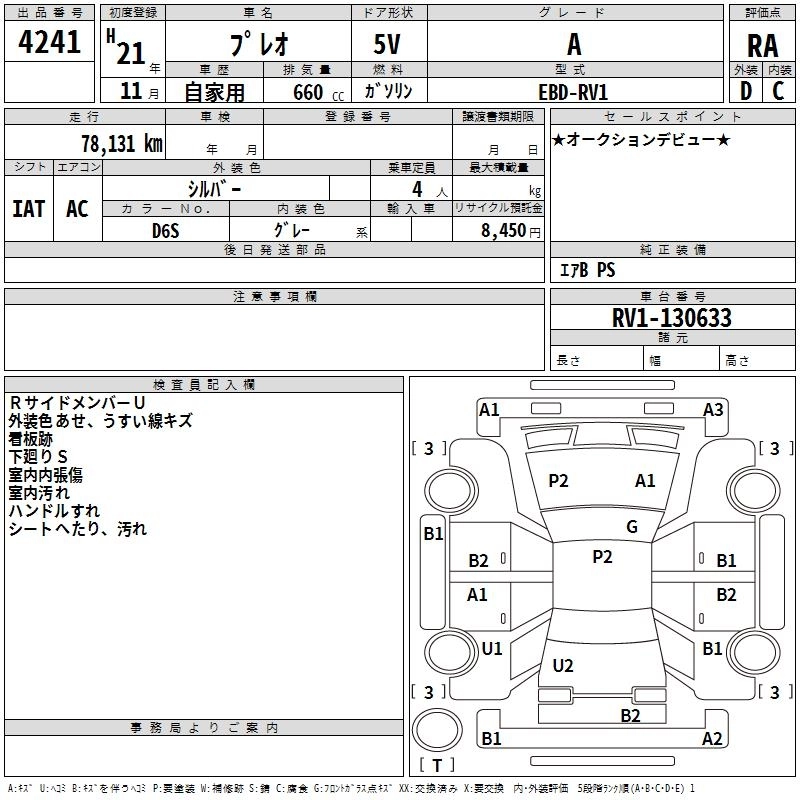 SUBARU PLEO 2009 г., лот № 4241