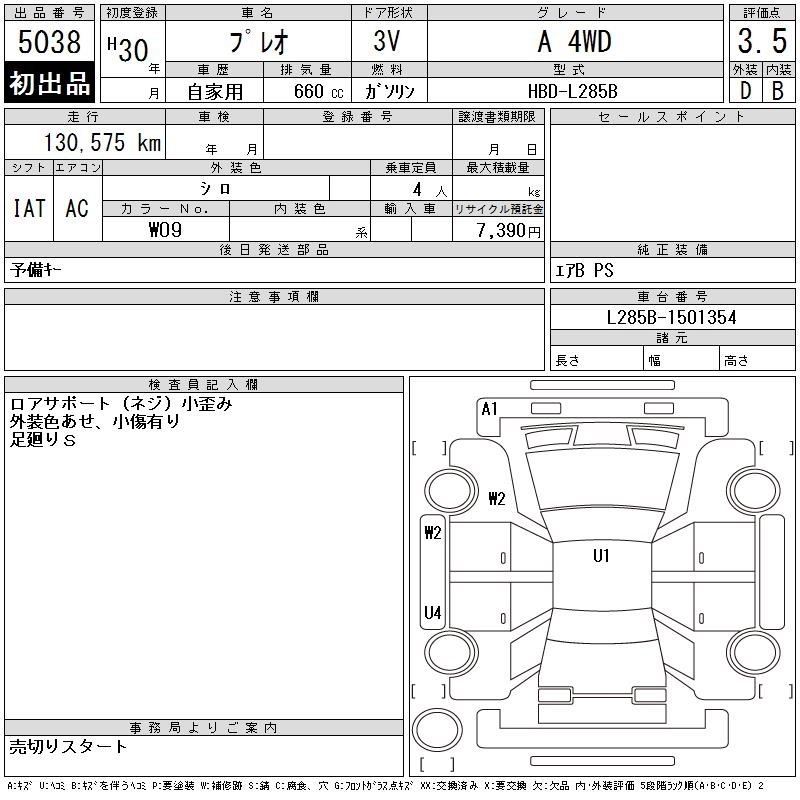 SUBARU PLEO 2018 г., лот № 5038
