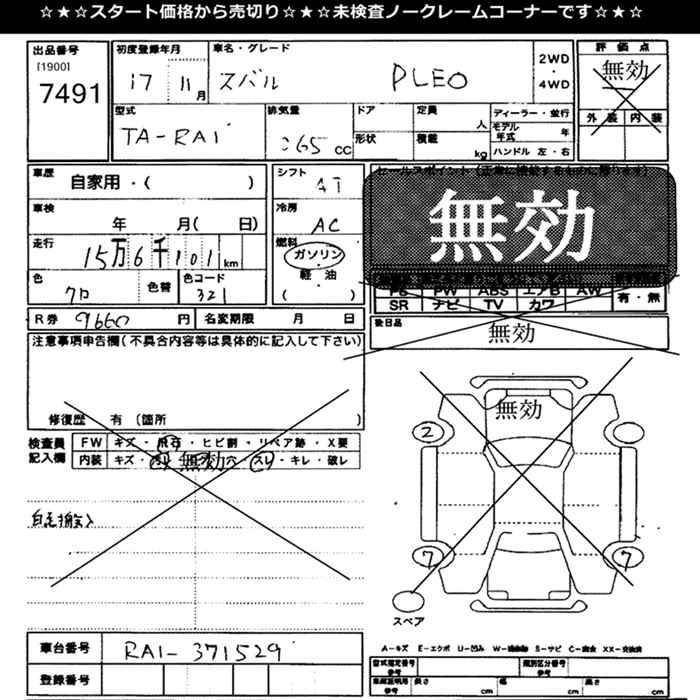 SUBARU PLEO 2005 г., лот № 7491