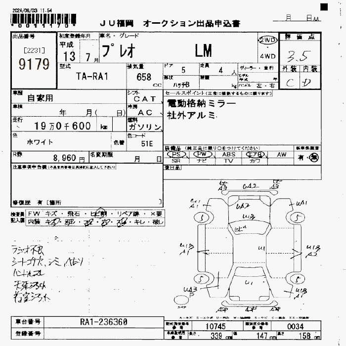 Статус не продан Лот 9179 Аукцион JU Fukuoka Дата аукциона 23.01.2026