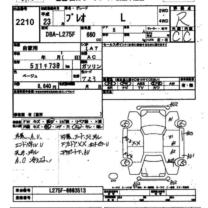 SUBARU PLEO 2011 г., лот № 2210