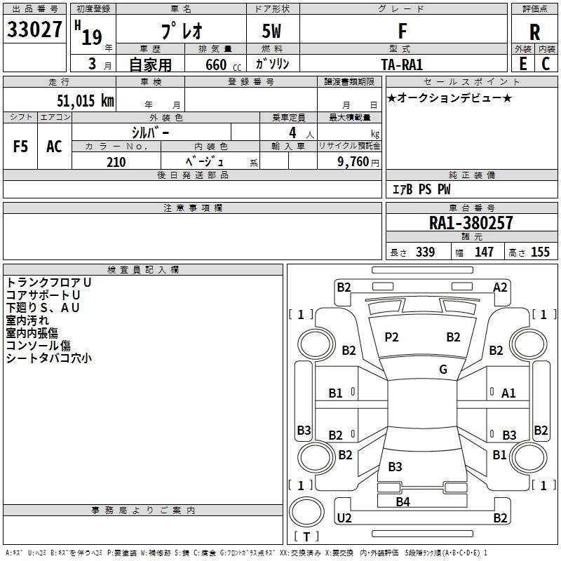 SUBARU PLEO 2007 г., лот № 33027