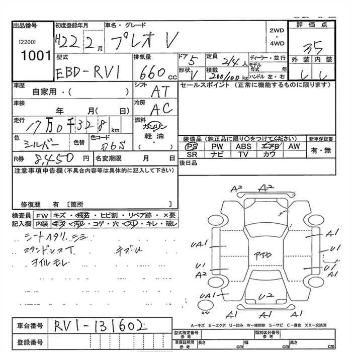 SUBARU PLEO 2010 г., лот № 1001
