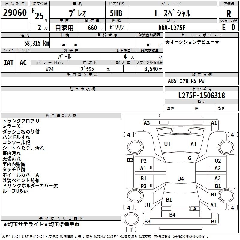 SUBARU PLEO 2013 г., лот № 29060