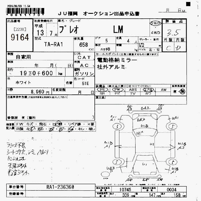 Статус выставлен на аукцион Лот 9164 Аукцион JU Fukuoka Дата аукциона 13.03.2026