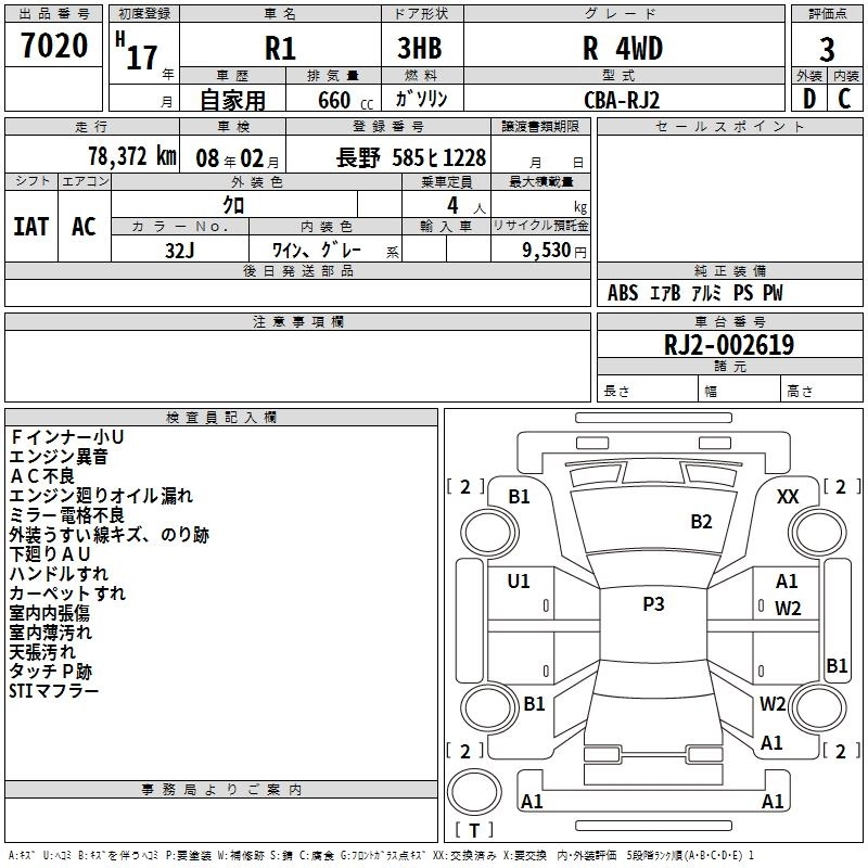 SUBARU R1 2005 г., лот № 7020