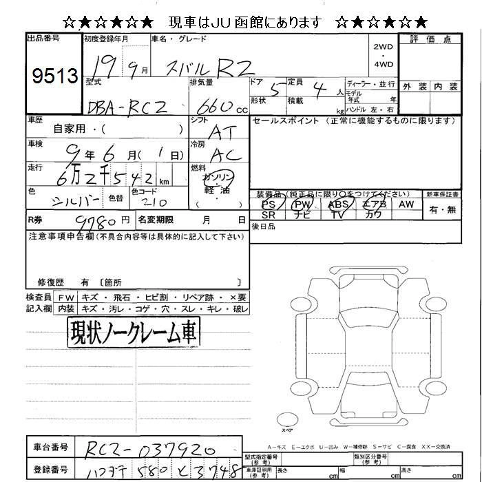 Статус продан Лот 9513 Аукцион JU Hokkaido Дата аукциона 23.01.2026