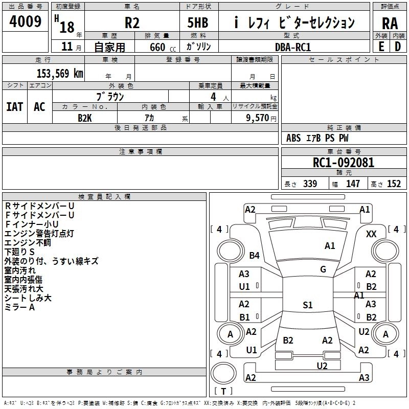 SUBARU R2 2006 г., лот № 4009