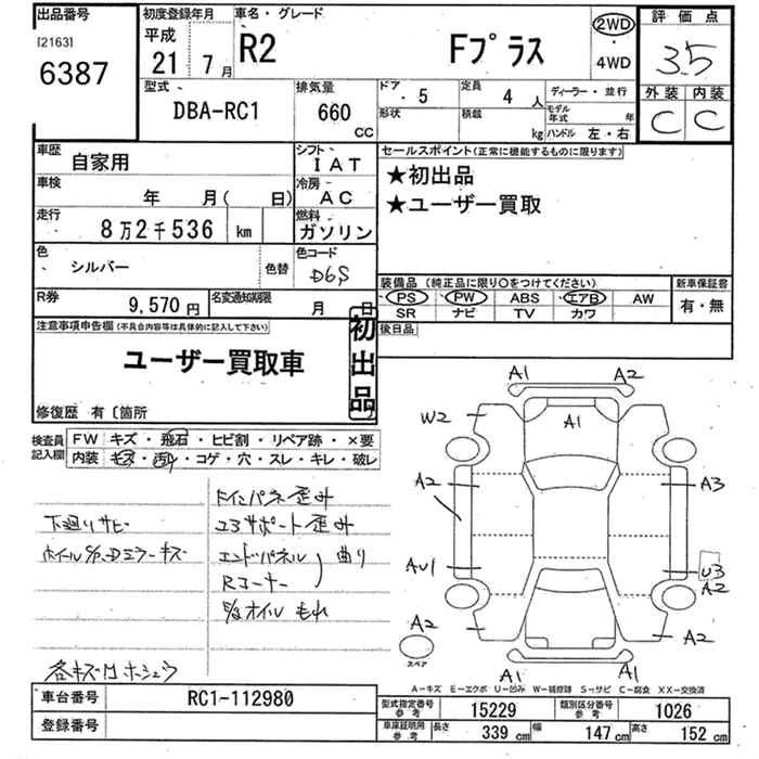 SUBARU R2 2009 г., лот № 6387