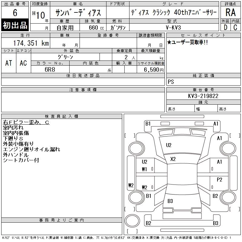 SUBARU SAMBAR DIAS 1998 г., лот № 6
