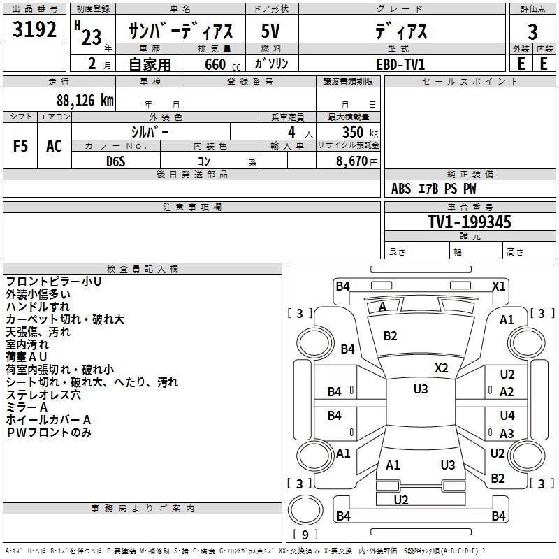 SUBARU SAMBAR DIAS 2011 г., лот № 3192