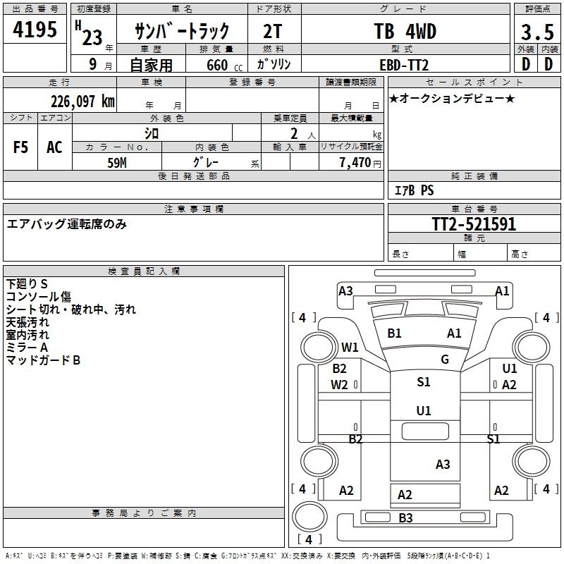 SUBARU SAMBAR TRUCK 2011 г., лот № 4195
