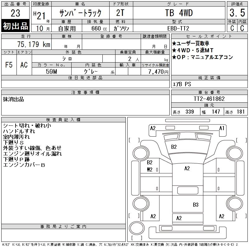 SUBARU SAMBAR TRUCK 2009 г., лот № 23