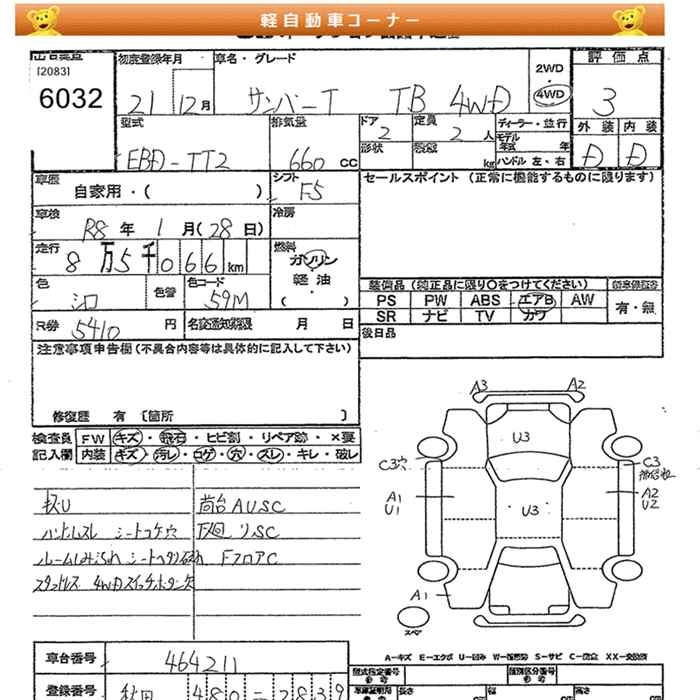 SUBARU SAMBAR TRUCK 2009 г., лот № 6032