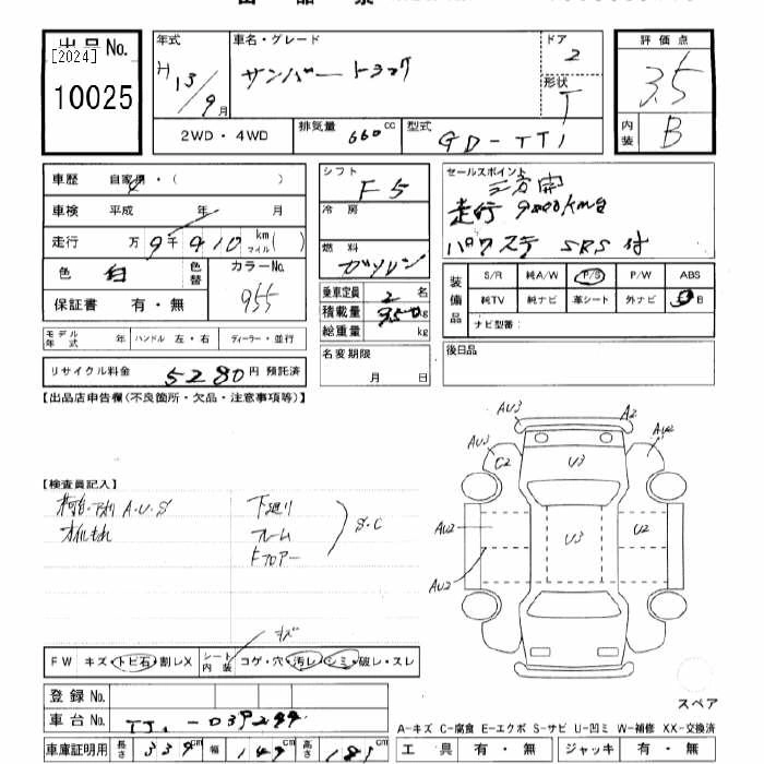 SUBARU SAMBAR TRUCK 2001 г., лот № 10025