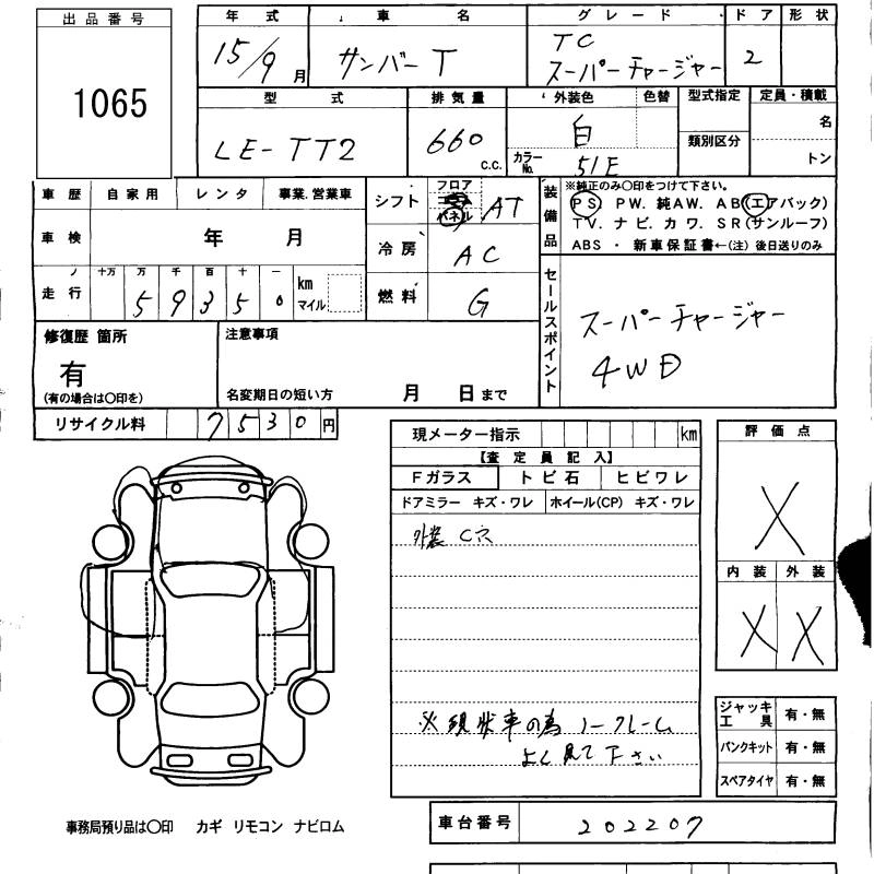 SUBARU SAMBAR TRUCK 2003 г., лот № 1065
