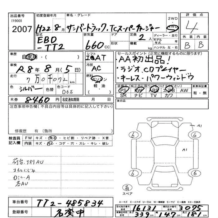 SUBARU SAMBAR TRUCK 2010 г., лот № 2007
