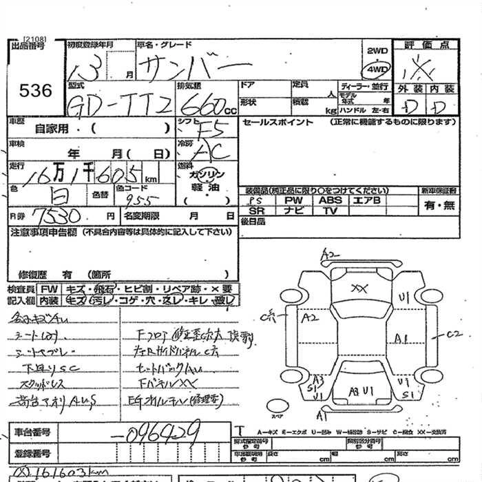 SUBARU SAMBAR TRUCK 2001 г., лот № 536