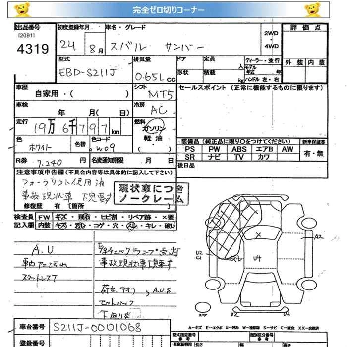 SUBARU SAMBAR TRUCK 2012 г., лот № 4319