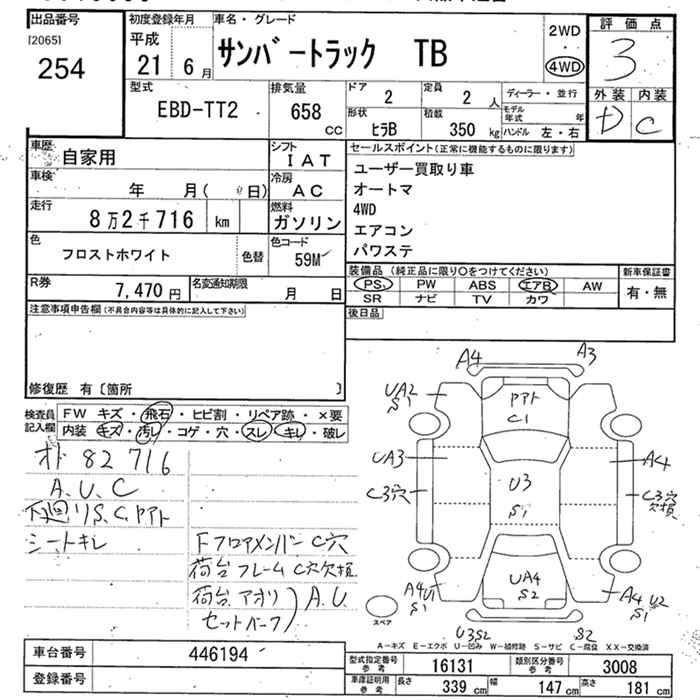 SUBARU SAMBAR TRUCK 2009 г., лот № 254