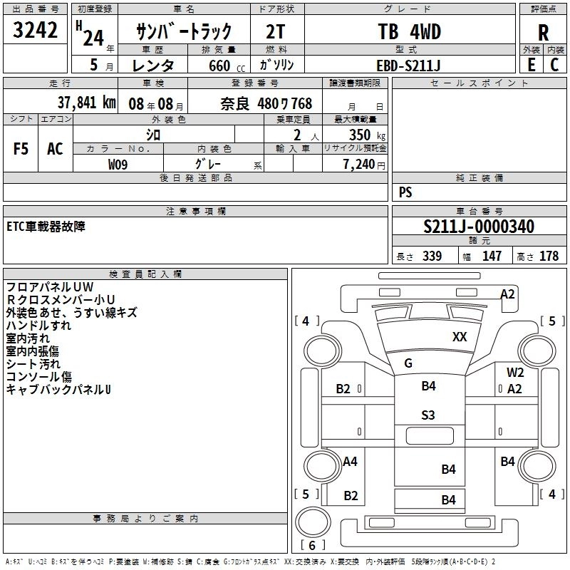 Год выпуска2012 Пробег 38 000 км КузовS211J КомплектацияTB 4WD