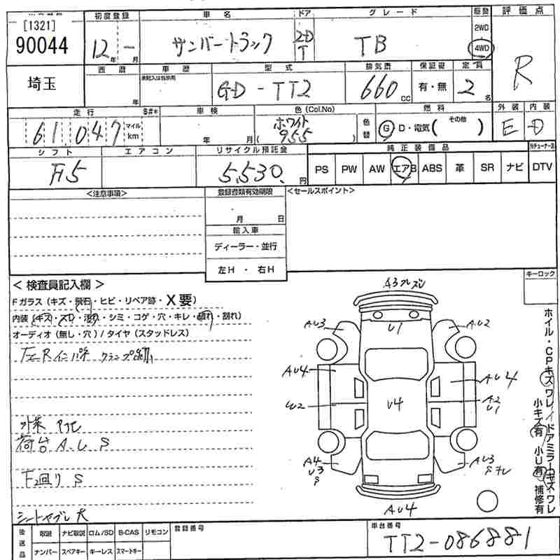 SUBARU SAMBAR TRUCK 2000 г., лот № 90044