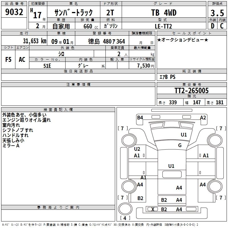 Статус выставлен на аукцион Лот 9032 Аукцион TAA Shikoku Дата аукциона 10.03.2026