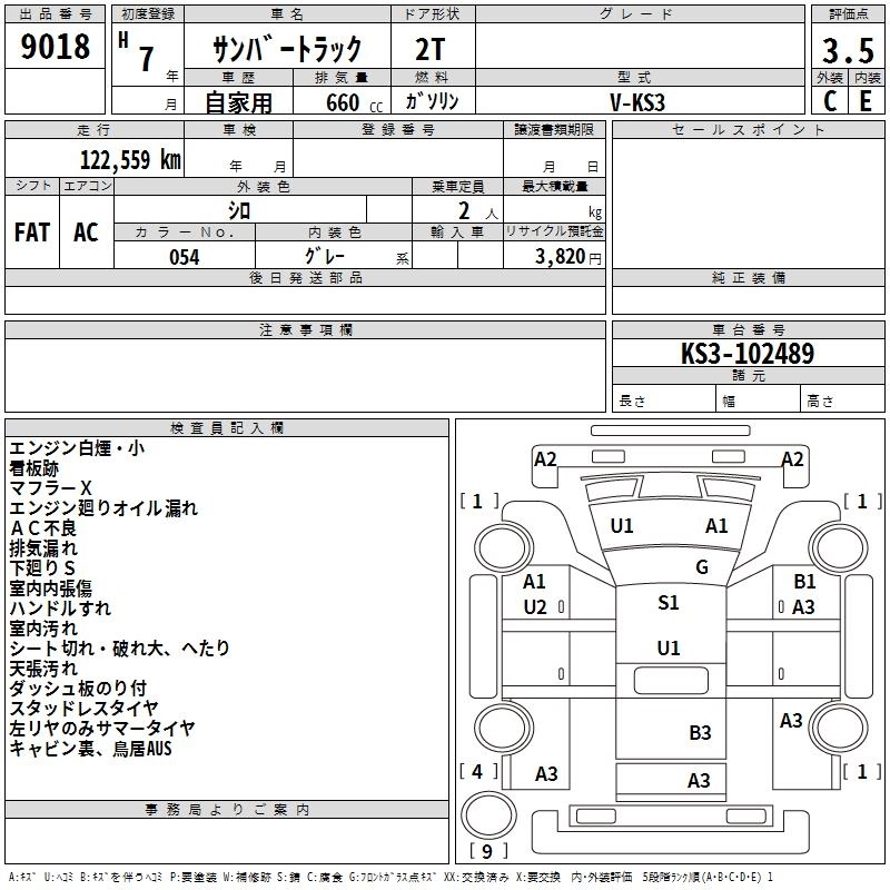 SUBARU SAMBAR TRUCK 1995 г., лот № 9018