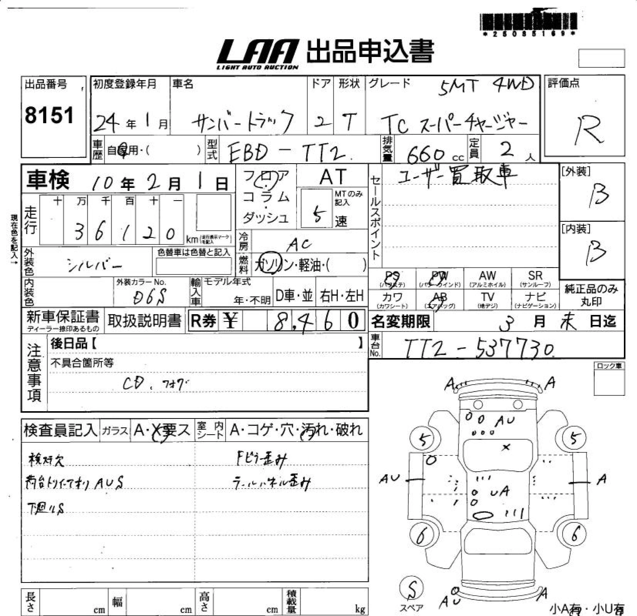 Статус выставлен на аукцион Лот 8151 Аукцион LAA Shikoku Дата аукциона 11.03.2026