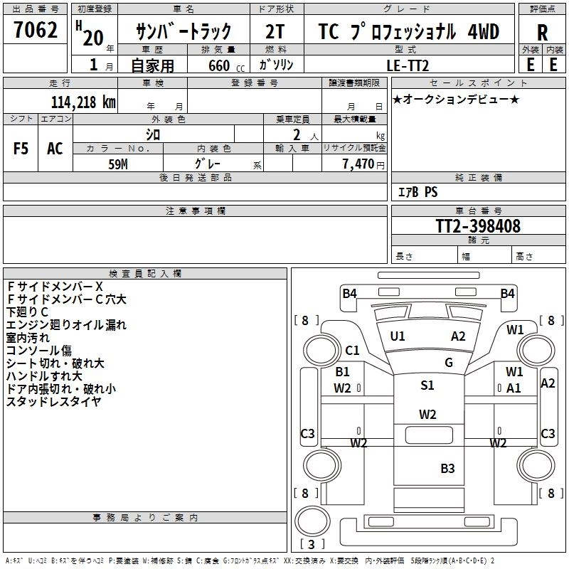 SUBARU SAMBAR TRUCK 2008 г., лот № 7062