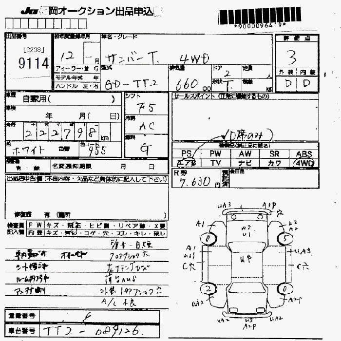 SUBARU SAMBAR TRUCK 2000 г., лот № 9114