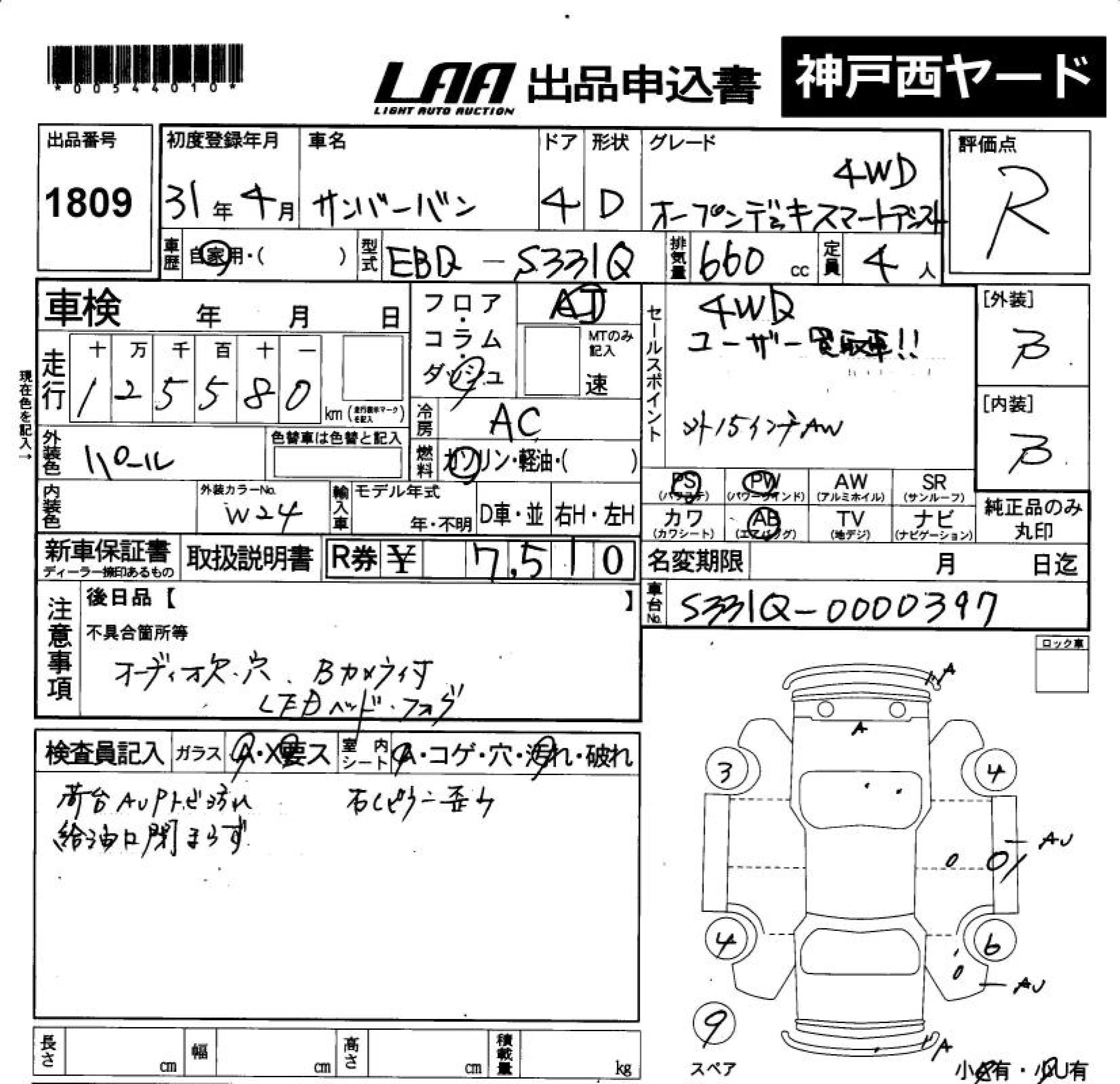 Статус не продан Лот 1809 Аукцион LAA Okayama Дата аукциона 21.11.2025