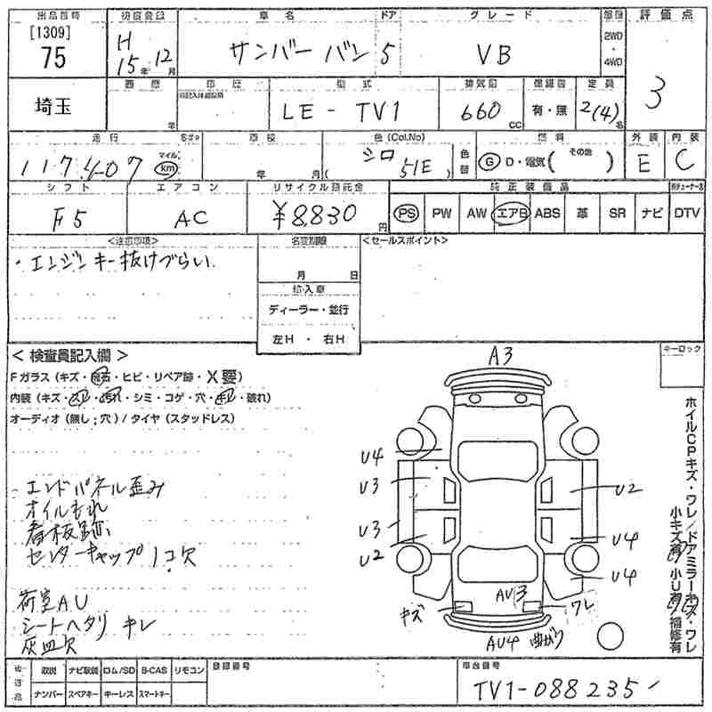 SUBARU SAMBAR VAN 2003 г., лот № 75